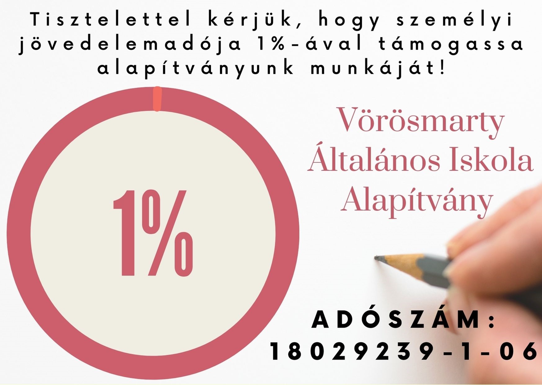 Idén is lehetőség van arra, hogy a Vörösmarty Általános Iskola Alapítvány javára rendelkezzen az összevont adóalap után befizetett személyi jövedelemadója 1%-áról!