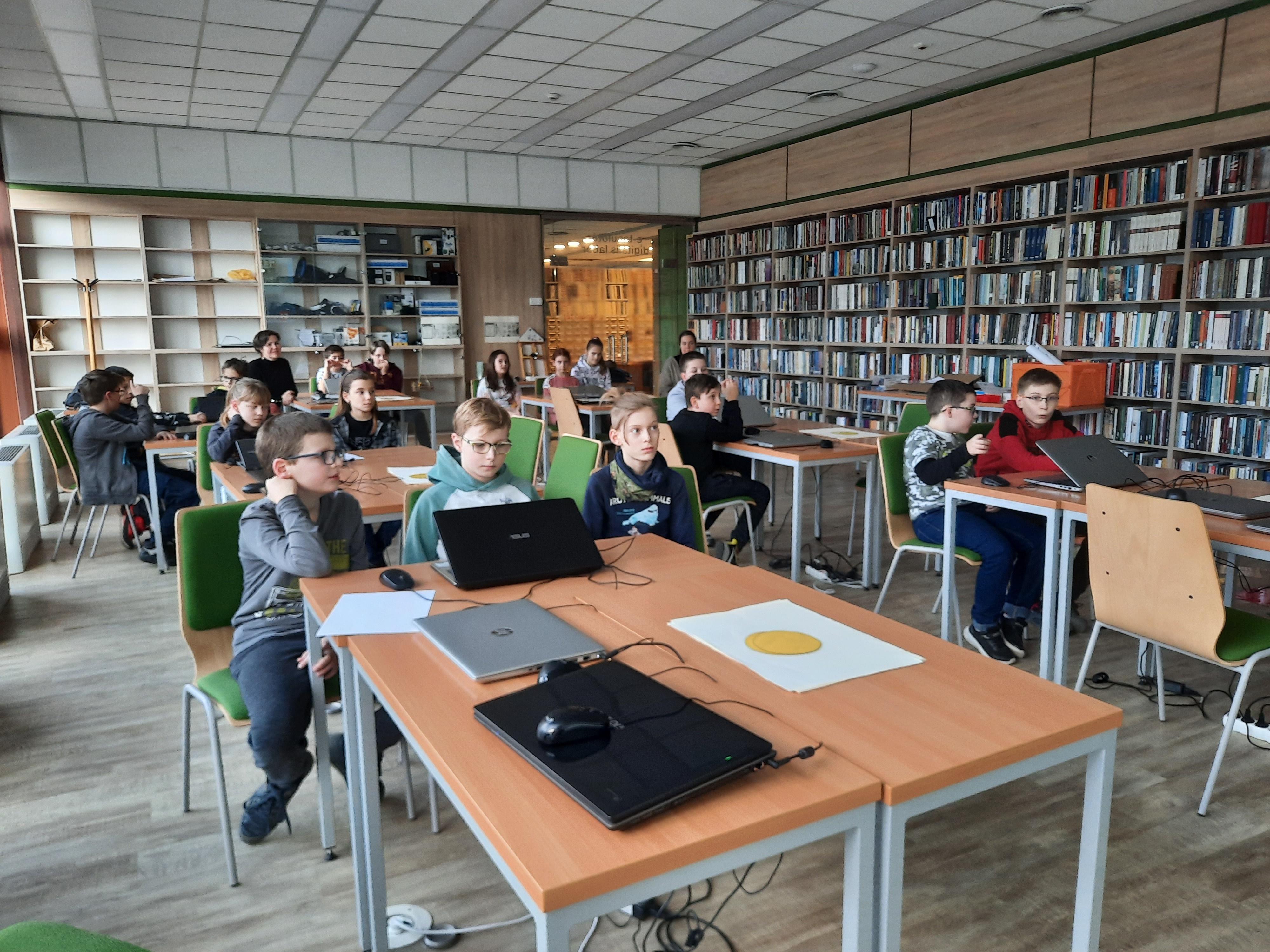 A jeles természetvédelmi naphoz csatlakozva iskolánk 5. a osztályos tanulói ismeretterjesztő játékokra épülő interaktív érzékenyítő foglalkozáson vettek részt a Somogyi Károly Városi és Megyei Könyvtár digitális laborjában.
